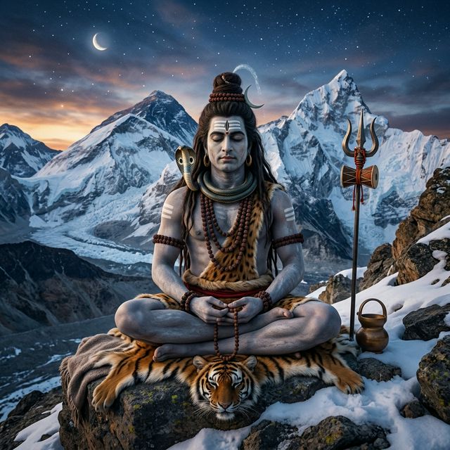 भगवान शिव, महादेव - हिमालय के कालातीत तपस्वी। गहरा वैराग्य, अनंत शांति और शिव पुराण की शिक्षाओं की खोज करें।